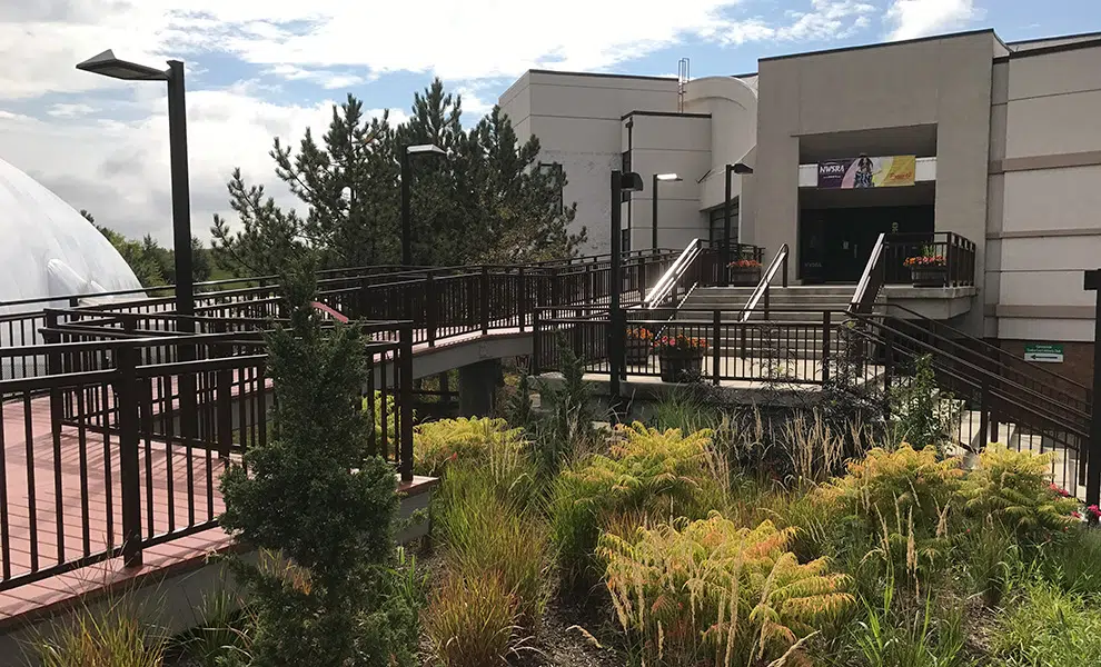 Installation of an elevated ADA accessible ramp to connect the parking lot to the main entrance of the Hanover Park Community Center. Design and installation of the elevated ramp included spanning the existing waterway with a structural steel frame on deep foundations to integrate with the existing two-story staircase. Improvements consisted of composite ramp decking, custom aluminum railings, area lighting, and landscaping improvements.